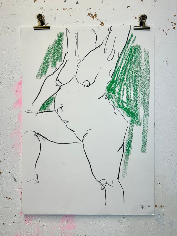 A lovely big drawing in charcoal and pastel! Energy! Green! Yes!!!