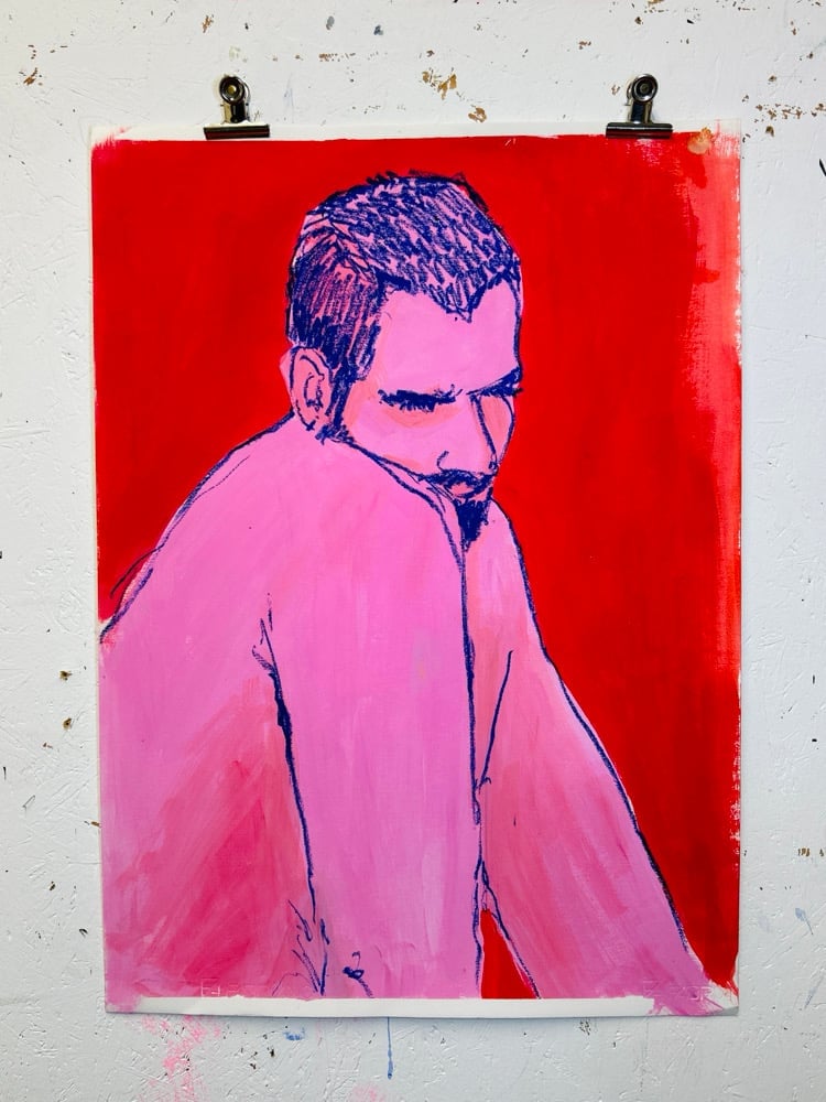 A big beautiful painting in acrylic and oil bar on some heavy and sumptuous rag paper! So bright and colourful and actually makes a man look exciting for once!